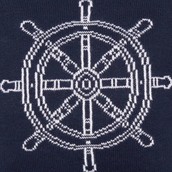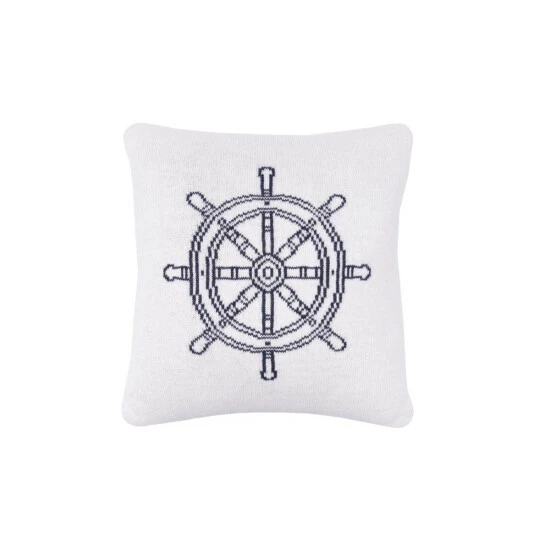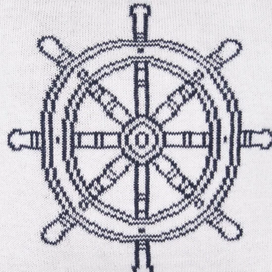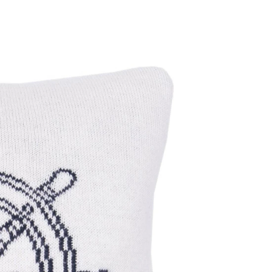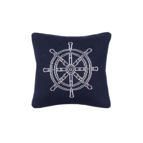 Enjoy a little maritime style with this cozy knit pillow. This reversible decorative throw pillow features a navy blue ship’s wheel on one side and white on the reverse, so all you need to do is add a red throw to give your bed or sofa a fun nautical Americana style.