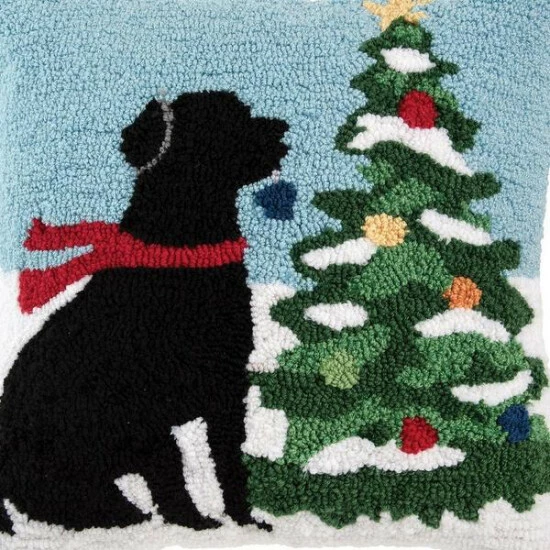 C&F Home Dog & Christmas Tree 18″ x 18″ Hooked Throw Pillow
