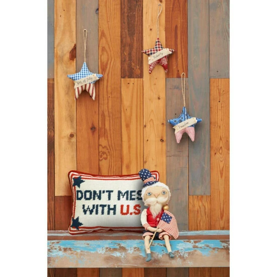 Celebrate the land that you love with the Don’t mess with U.S. needlepoint accent pillow. A classic red and white stripe applique is layered on a casual white ground, making this pillow perfect for your Fourth of July dΓ©cor or to complete your everyday Americana style. Care instructions: Spot clean. Material: Wool/Cotton/Polyester. Product dimensions: 6.5″ x 9″. Items included: 1.