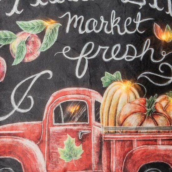 Decorate for the holiday season with our Farmers Market Chalk Led Pillow. It is sure to bring joy to your home year after year. Care instructions: Spot Clean. Material: Polyester. Product Dimensions: 18″ x 18″.Product Weight: 1.32.Items included: 1.