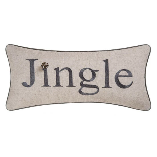 If simple and sophisticated winter decor is more your speed, this Jingle pillow is an impeccable addition to your home. In a neutral color palette of natural and grey the message Jingle is embroidered and embellished with a silver bell as a reminder to put the “jingle” back into your holiday season. Crafted with a cotton cover and finished with a coordinating piped edge, this pillow is filled with plush polyester filling and sewn closed. Size: 10 x 19 inches. Spot cleaning recommended. Care instructions: Spot Clean. Material: Cover:70% Polyester/ 30% Linen. Product dimensions: 10″ x 19″. Items included: 1.