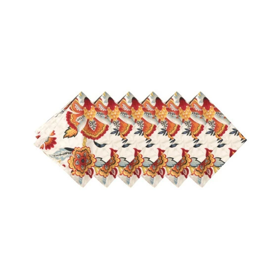 The Kennedy collection of table linens features a colorful floral Jacobean design that brings excitement and vitality to your kitchen or dining room. You can coordinate this dynamic printed design with your warm autumn dΓ©cor, then toss this cotton napkin in the wash and style it again with the subtle reverse print for a neutral, everyday look.