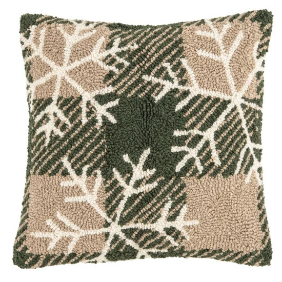 Add a touch of rustic warmth to your favorite space with the Lockley Snow Hooked Pillow. This cozy accent features iconic snowflakes drifting across a forest green and tan plaid ground, perfect to complete your winter lodge theme, to spruce up your space for Christmas, or to create a snug corner for any day of the year. Finished with a clean knife edge and secured with a zipper closure. Crafted of acrylic yarn on a cotton cover and removable polyester insert for easy care. Spot cleaning recommended. Size: 18-inches x 18-inches Care instructions: Spot Clean. Material: Acrylic. Product dimensions: 18″ x 18″. Items included: 1.