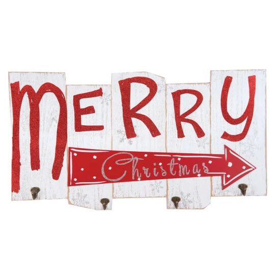 Decorate for the season with this wonderful Merry Christmas Sign w/ Hooks. Perfect for your home or as a gift for a friend or loved one. It’s sure to delight year after year.