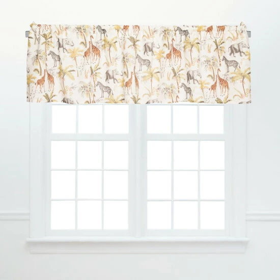 The Nico Safari collection instantly transforms any day into a safari adventure. This pair of standard size valances is perfect for an adventurous, youthful dining room or a themed vacation rental kitchen!