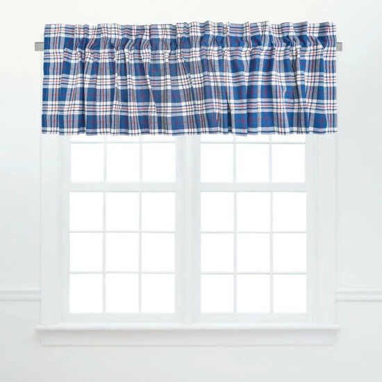 The Parker Plaid ruffled valance brings a touch of country-chic to your home with a timeless blue plaid complemented by red and white undertones. This woven unlined valance is finished with a classic hemstitching detail putting the picturesque finishing touch on your space while a cool breeze wafts through the window.