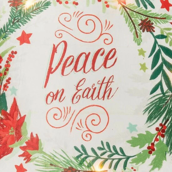 Decorate for the holiday season with our Peace On Earth Led Pillow. It is sure to bring joy to your home year after year. Care instructions: Spot Clean. Material: Polyester. Product Dimensions: 18″ x 18″.Product Weight: 1.32.Items included: 1.