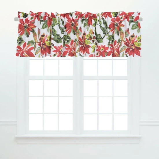 C&F Home Poinsettia Berries Cotton Valance Window Treatment – Set of 2