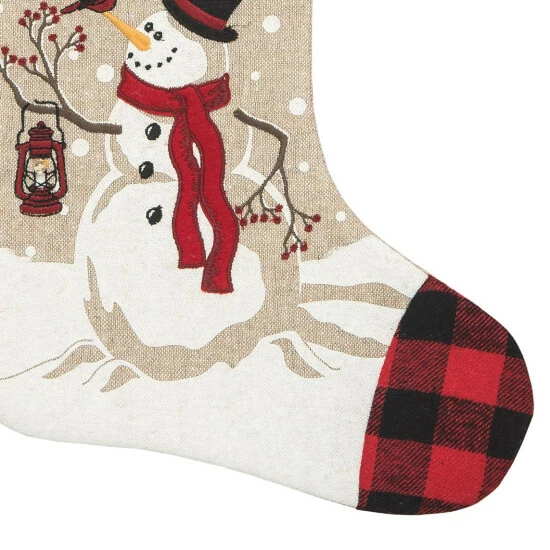 Dive into the magic and delight of the holidays! This festive stocking features a classic snowman design with a battery-powered LED lantern, all trimmed with buffalo check accents. Hang this stocking by the chimney with care, or use it as creative wrapping for one of your gifts this year.